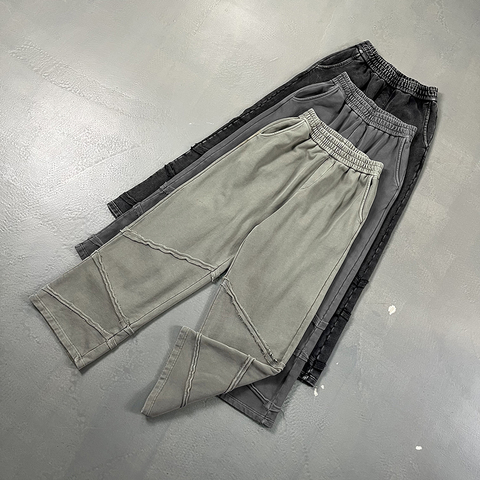 Yingling กางเกงโอเวอร์ไซส์สำหรับผู้ชายกางเกงโอเวอร์ไซส์ผ้าคอตตอนฟอกสีกรดออกแบบโลโก้ได้ตามต้องการแบบ100%