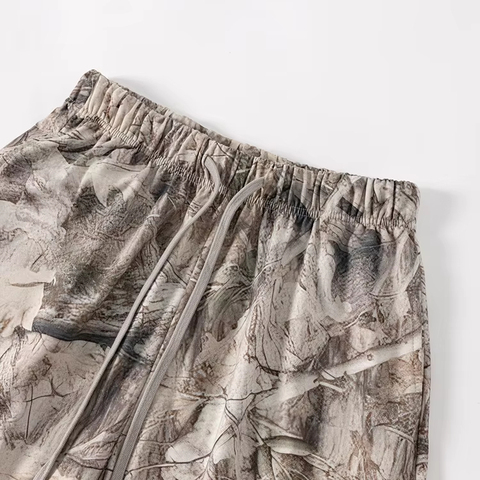 Yingling กางเกงขาสั้นสตรีทแวร์แบบกำหนดเองกางเกงสเวตเตอร์ทรงหลวมมีเชือกรูดพิมพ์ลายพรางสำหรับ Mem