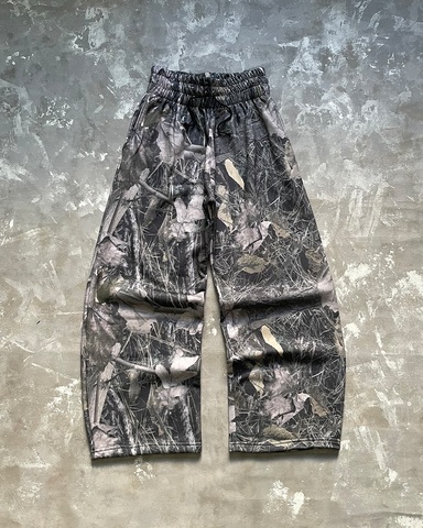 Yingling กางเกงโอเวอร์ไซส์พิมพ์ลายต้นไม้จริงผ้าแคนวาส100% โอเวอร์ไซส์ผ้าฝ้ายเฮฟวีเวตสไตล์สตรีทพร้อมเชือกผูก